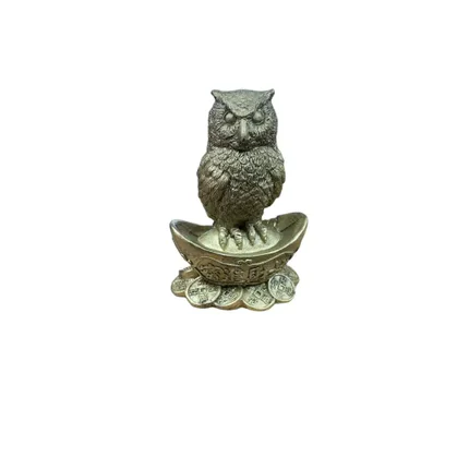 Decorațiune Feng Shui – Bufniță cu Pepită de Aur pe Monede (6 cm)