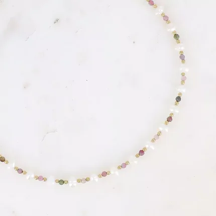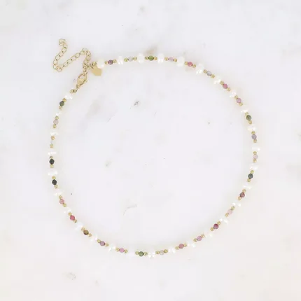 Colier Bohm Paris – Turmalină Multicoloră și Perle de Apă Dulce