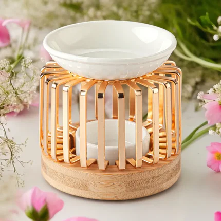 Utilizare: jos se așază o lumânare pastilă, iar în partea superioară se adaugă apă și câteva picături de ulei esențial pentru difuzarea aromei.