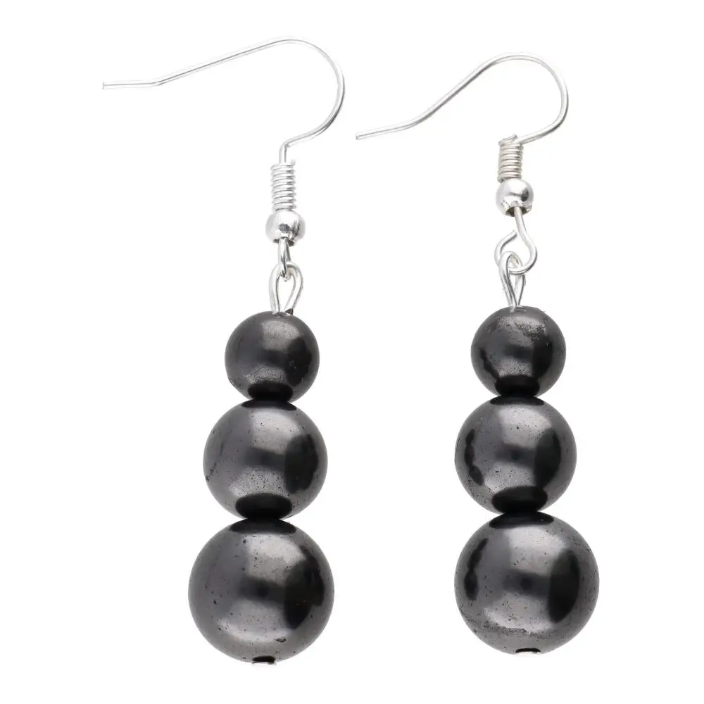 Acești cercei eleganți sunt realizați din sfere de shungit natural. Cu o dimensiune de aproximativ 3,5 x 1,2 cm și o greutate între 8–10 g, sunt potriviți pentru purtare zilnică sau ca accesoriu cu rol protector și decorativ.