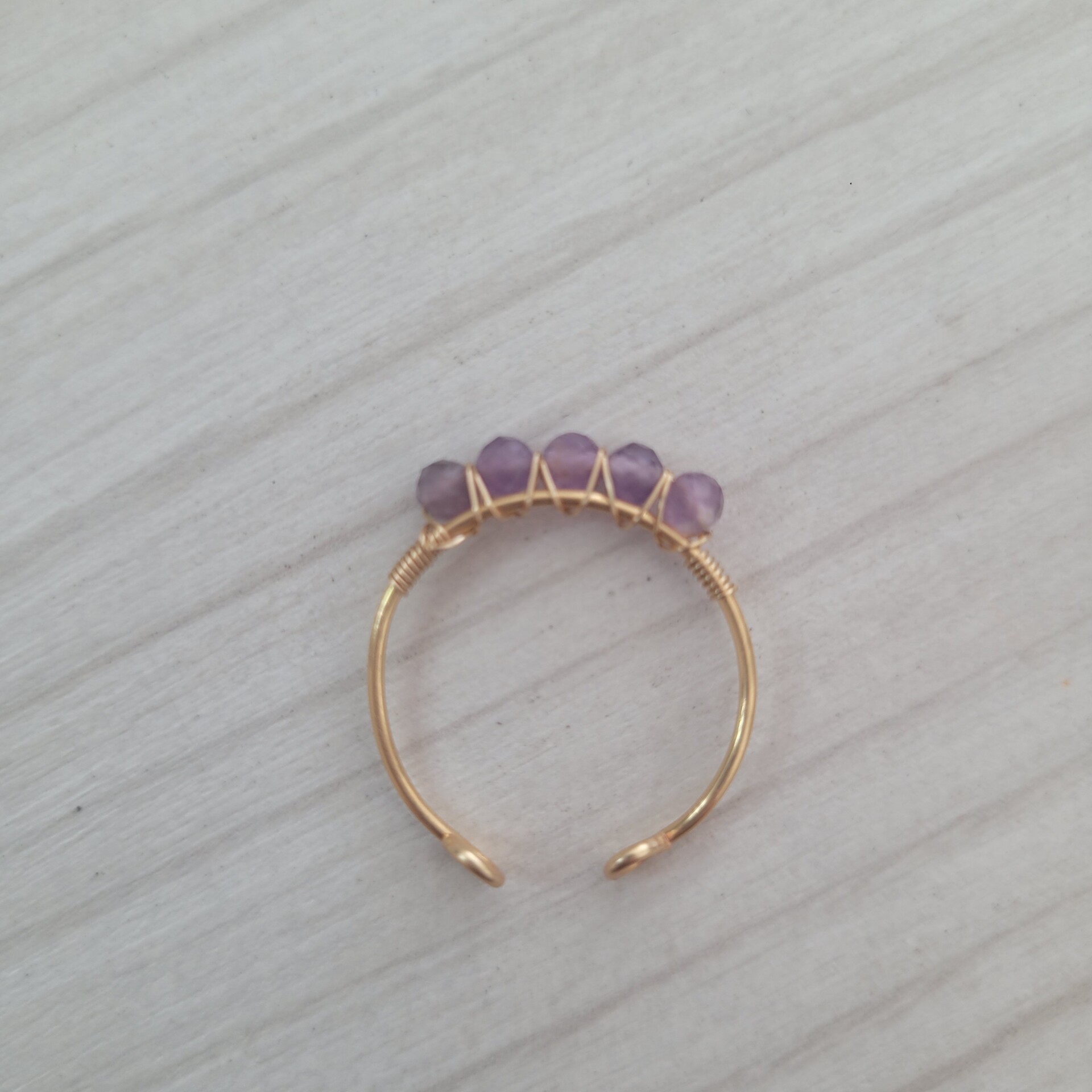 Îmbogățește-ți ținutele cu un strop de eleganță și energie pozitivă cu acest inel delicat cu mărgele de ametist. Designul minimalist evidențiază frumusețea naturală a pietrei și creează un accesoriu rafinat, potrivit pentru orice ocazie.