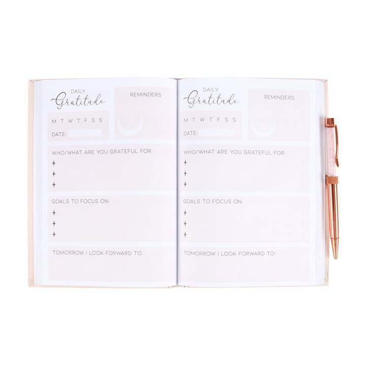 Folosește acest jurnal cu pix din cuarț roz pentru a-ți cultiva un obicei zilnic de recunoștință, care îți va aduce claritate mentală, echilibru emoțional și o perspectivă pozitivă asupra vieții!