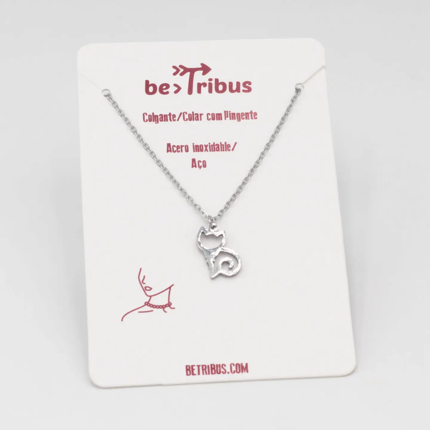 Pandantiv cu simbol pisică, pe lanț – oțel inoxidabil, argintiu