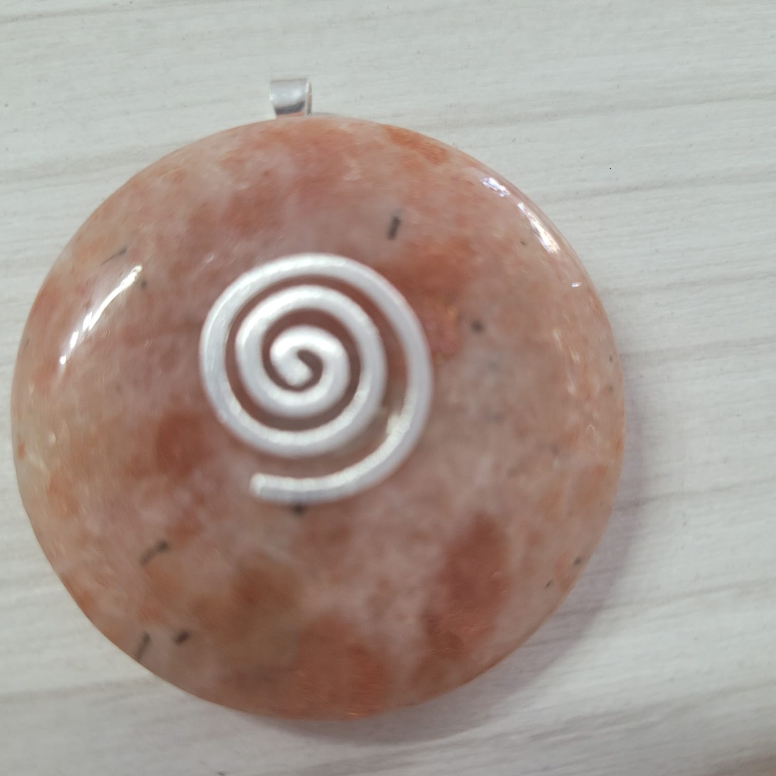 Această Pi rotundă din Piatra Soarelui naturală, cu un diametru de 40 mm, este un simbol străvechi al unității, eternității și echilibrului. Forma sa circulară cu deschidere centrală este adesea folosită în practici spirituale pentru a favoriza fluxul energiei vitale.