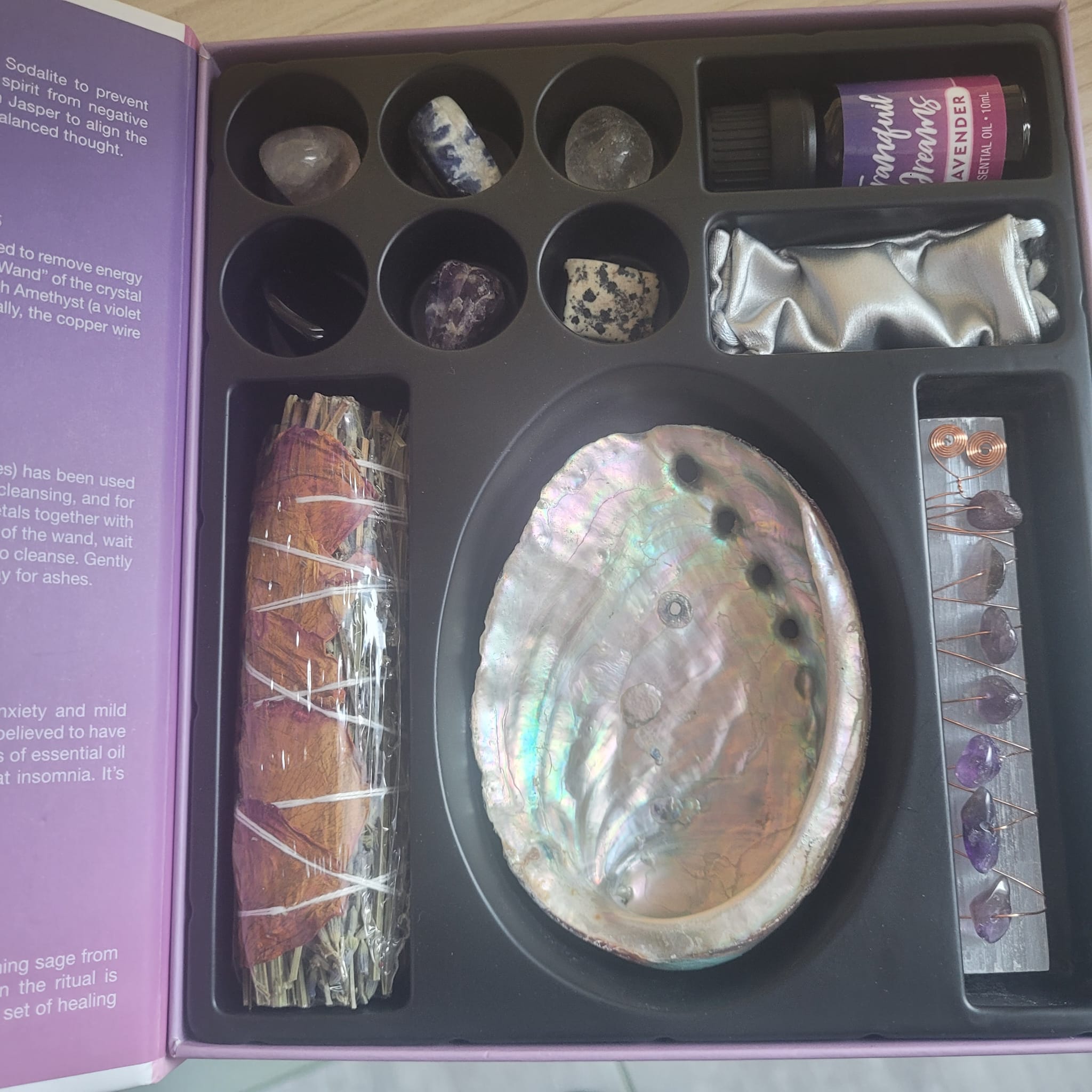 Creează un ritual de relaxare profundă și armonie interioară cu acest set complet, special conceput pentru a-ți transforma serile în momente de liniște și reconectare spirituală. Setul „Vise Liniștite” conține o selecție atentă de cristale, instrumente pentru fumigație și uleiuri esențiale, toate alese pentru a aduce calm, echilibru și vise plăcute.