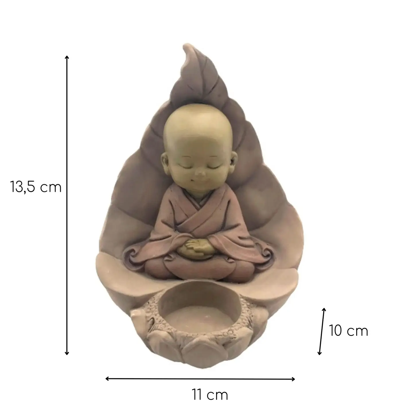 Adaugă un strop de puritate și energie zen casei tale cu această delicată statuetă Baby Buddha în poziție de meditație, simbol al inocenței, liniștii și armoniei interioare. În fața statuetei se află un mic spațiu special creat pentru a adăuga o floare, o lumânare sau orice alt obiect decorativ care îți reflectă intenția și stilul personal.